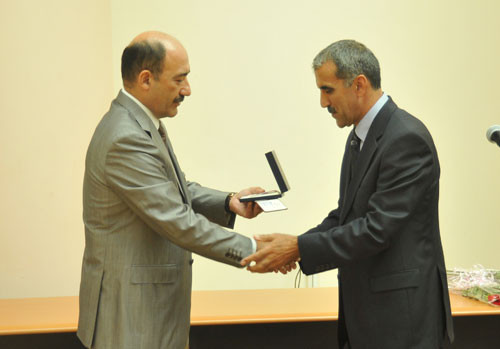 Sonra nazir Əbülfəs Qarayev ölkə başçısının imzaladığı sərəncamlara əsasən təltif olunmuş şəxslərə orden, medal və fəxri mükafatları təqdim etdi.