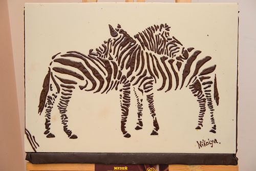 Bakıdakı sərgisi üçün məşhur şokolatye Nikolya xüsusi olaraq Azərbaycan və Bakıya həsr olunmuş şokoladdan bir sıra sənət əsəri hazırlamışdır. Burada 70 kiloqramdan artıq çəkisi olan “Qız qalası” şokolad miniatürü, Hökumət evi, Muzey Mərkəzi, Azərbaycan Dövlət Akademik Opera və Balet Teatrı, FlameTowers binalarını əks etdirən əsərləri, eləcə də marzipan meyvə və gülləri, şokolad manqalı və digər əsərləri görmək olar.