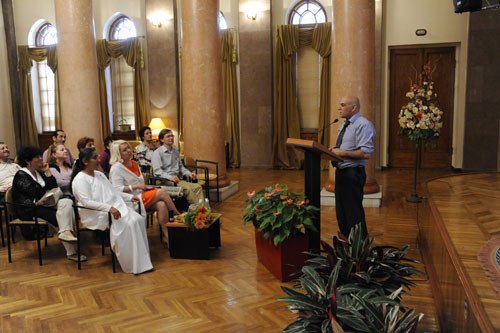 Говорит Лиана Везирова, директор Музейного центра: «То, что сегодня мы собрались здесь, – это великое благо. Спасибо Диди Сантош за то, что она наполнила наш город своей необыкновенной теплотой и любовью. Мы можем много говорить о том, какими нам надо быть. Можем проводить семинары, конференции и т.п. Но самое трудное – это всегда поступать так, как велит сердце. Зачастую мы полны страха, мы боимся сделать что-то хорошее. Порой в этом нам мешает даже наше образование, даже наше понимание культуры. Мы всегда должны слушать свое сердце. Оно нас не обманет. Нам надо любить друг друга. Если каждый на своем месте сделает хоть что-то хорошее – посадит цветок, скажет доброе слово, – нам всем будет хорошо».